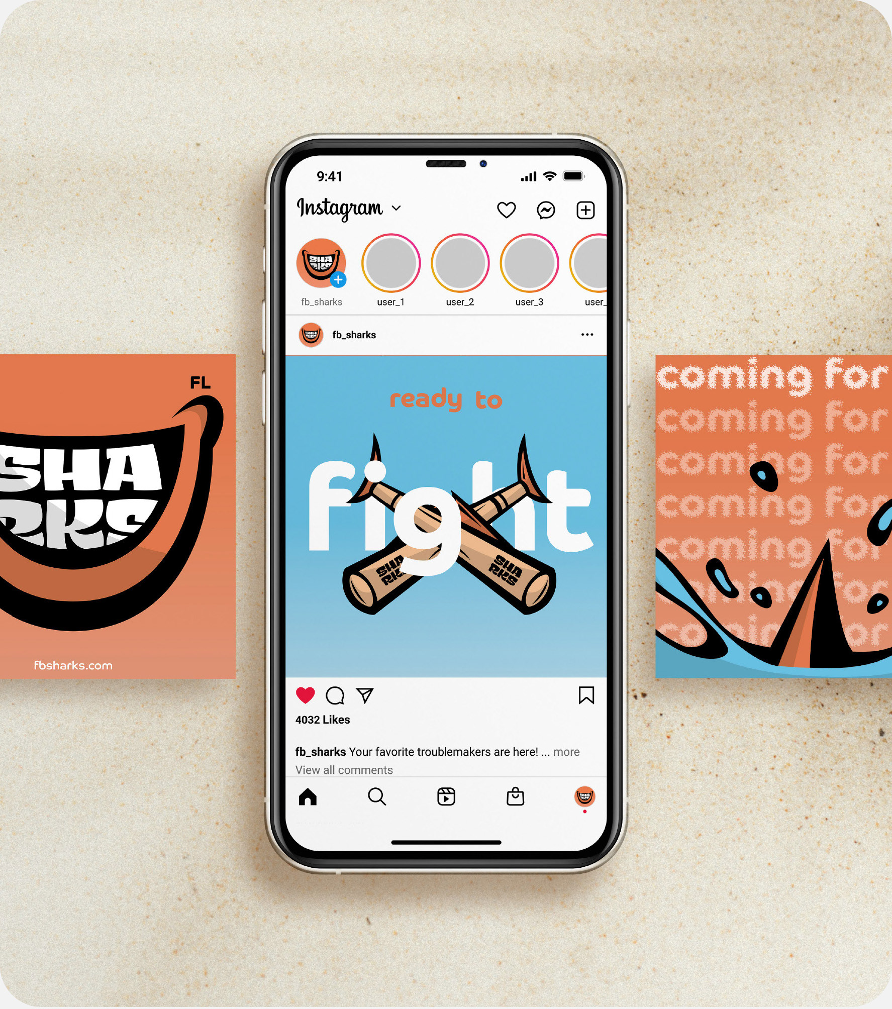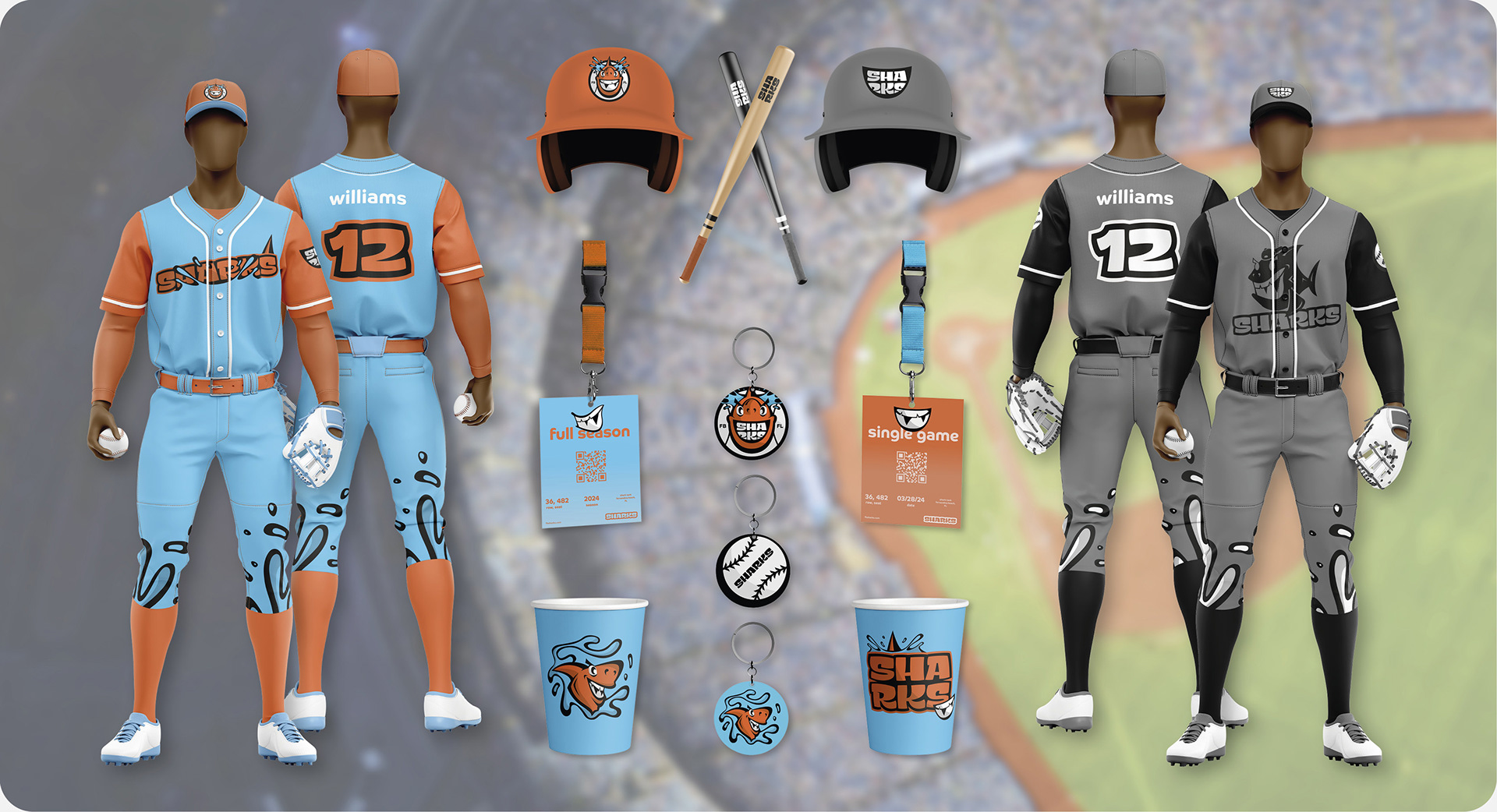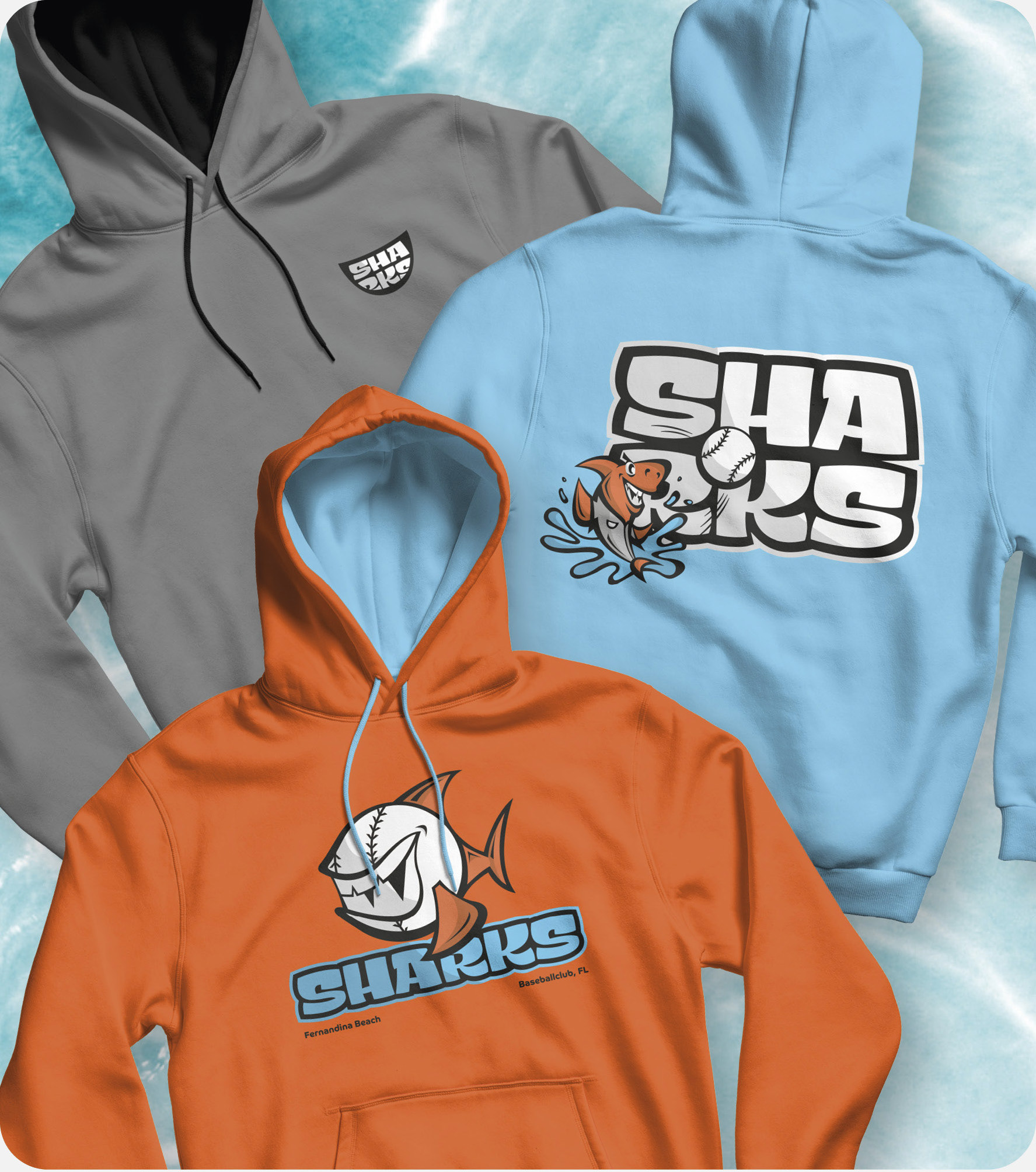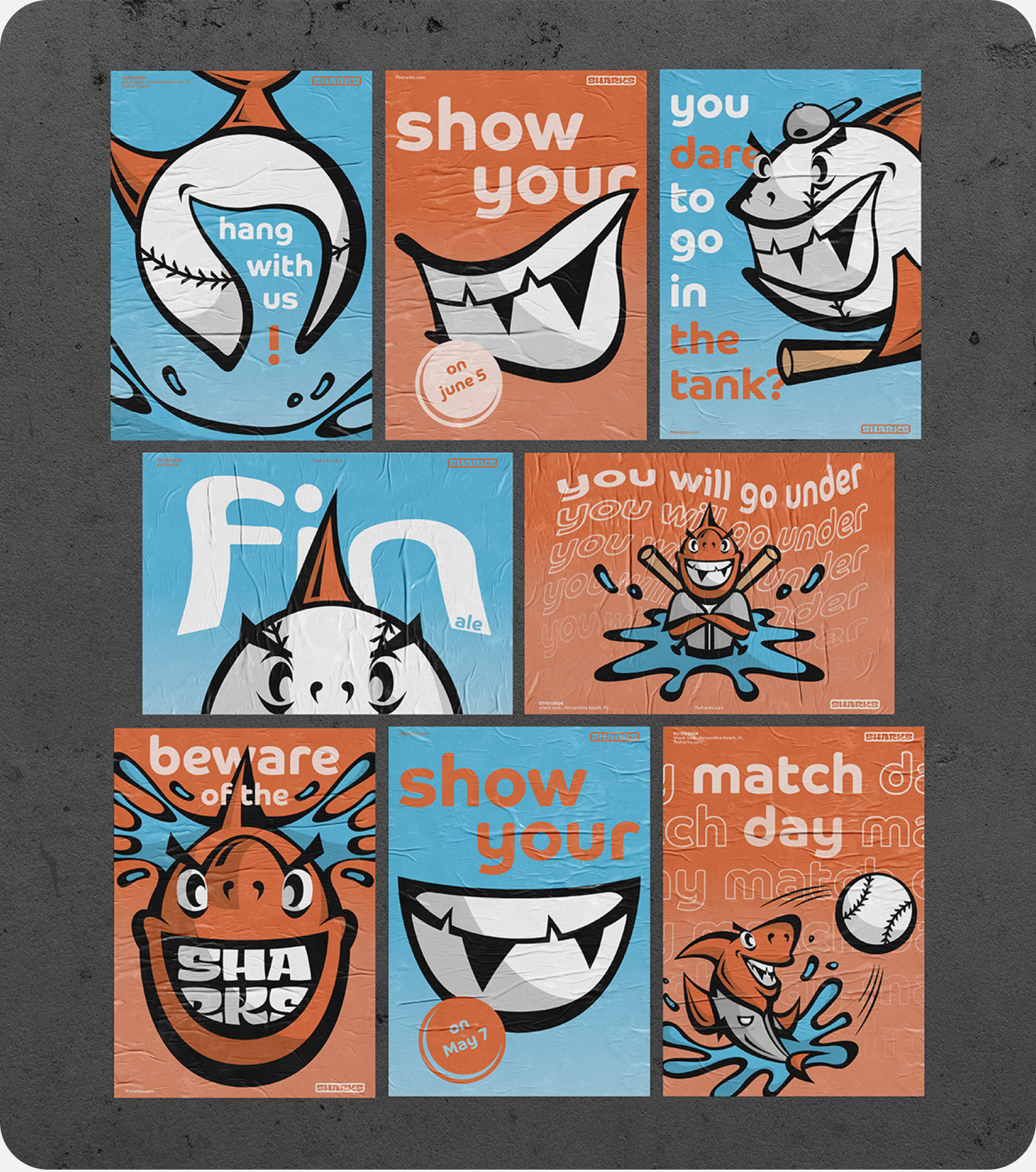 The project focuses on the branding for a fictional US Minor League Baseball team, the „Fernandina Beach Sharks“. Fernandina Beach, located in Florida, is known for numerous shark teeth findings, which is why the mascot is a shark with gaps in its teeth. Based on analog sketches, a broad logo and icon set was created and later applied to various media.