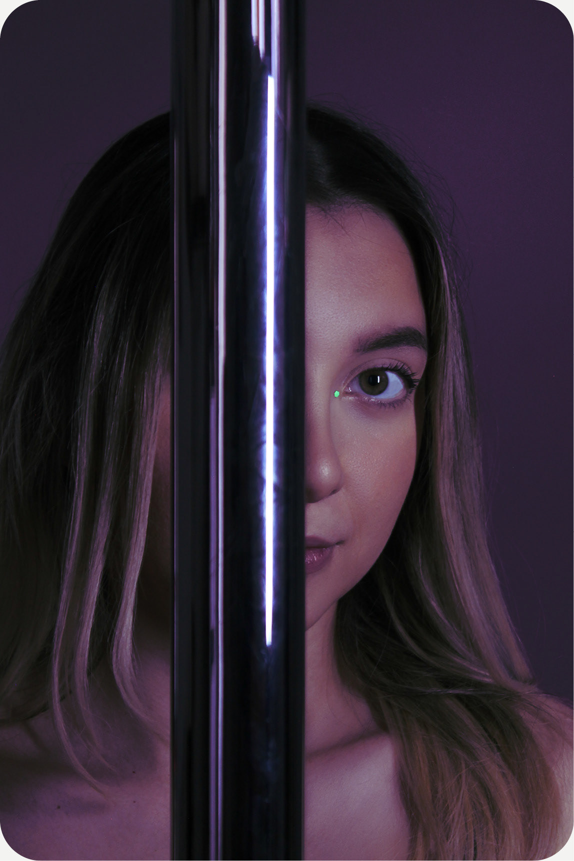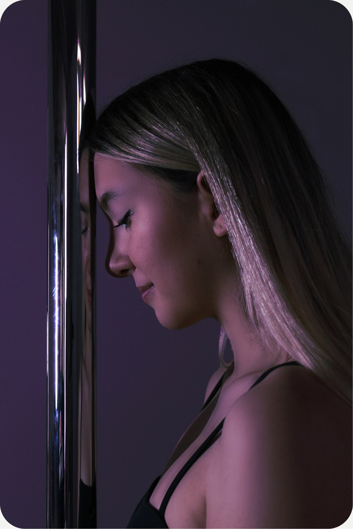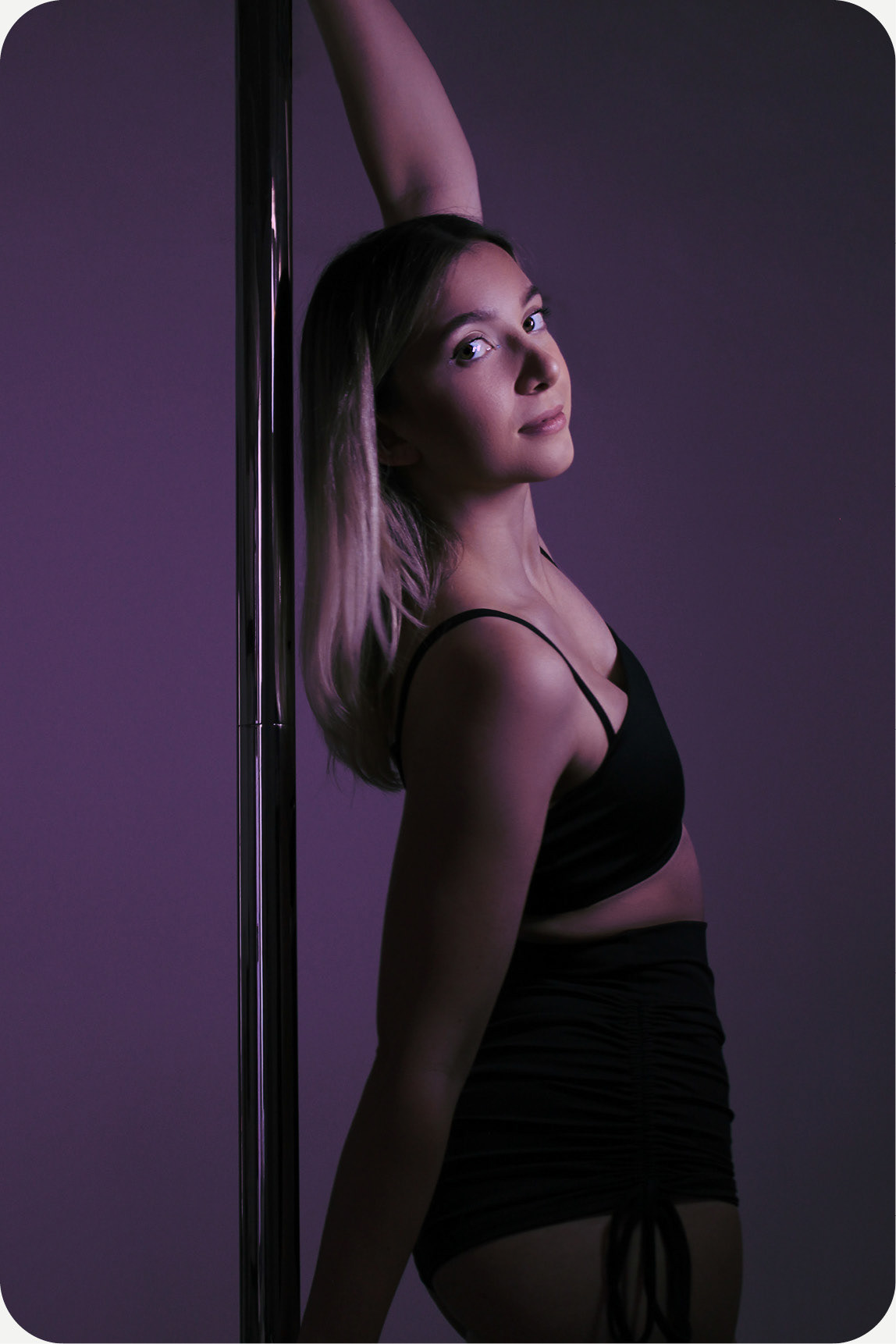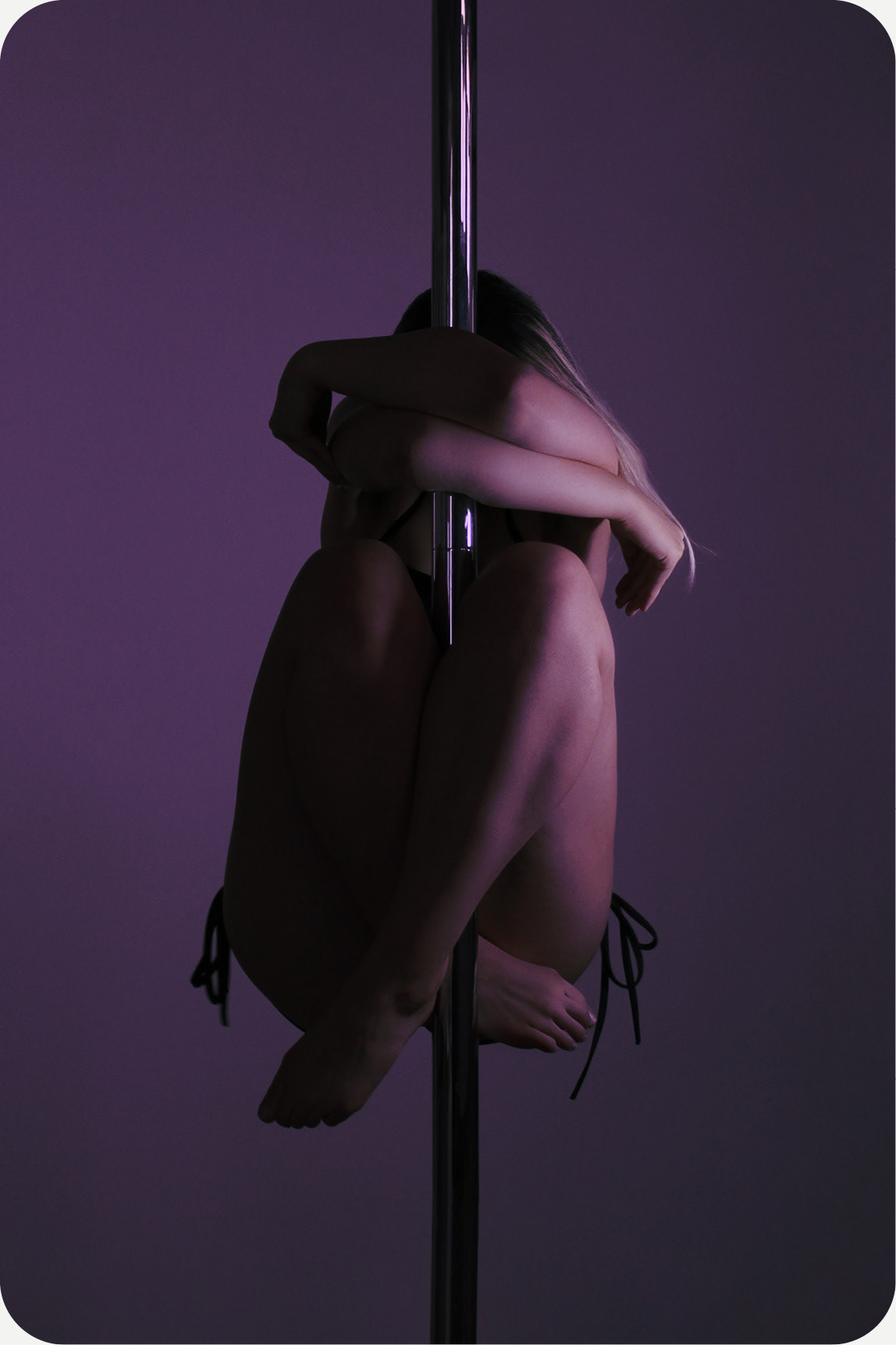 The images below belong to a photographic series called „Pole“, introducing the viewer to the sport of pole dance by showing a dancer at her training session. The photographs are portraying the dancer herself, as well as her relationship with the sport.